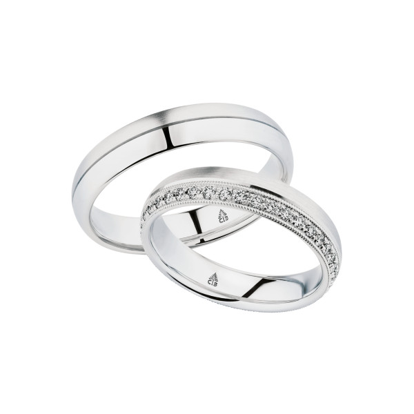 Ref. 0247042-0274558 - Ein Zusammenspiel aus mattem und glänzenden Edelmetall, das mit strahlenden Brillanten und wundervollem Millgriff jeden Betrachter verzaubert.