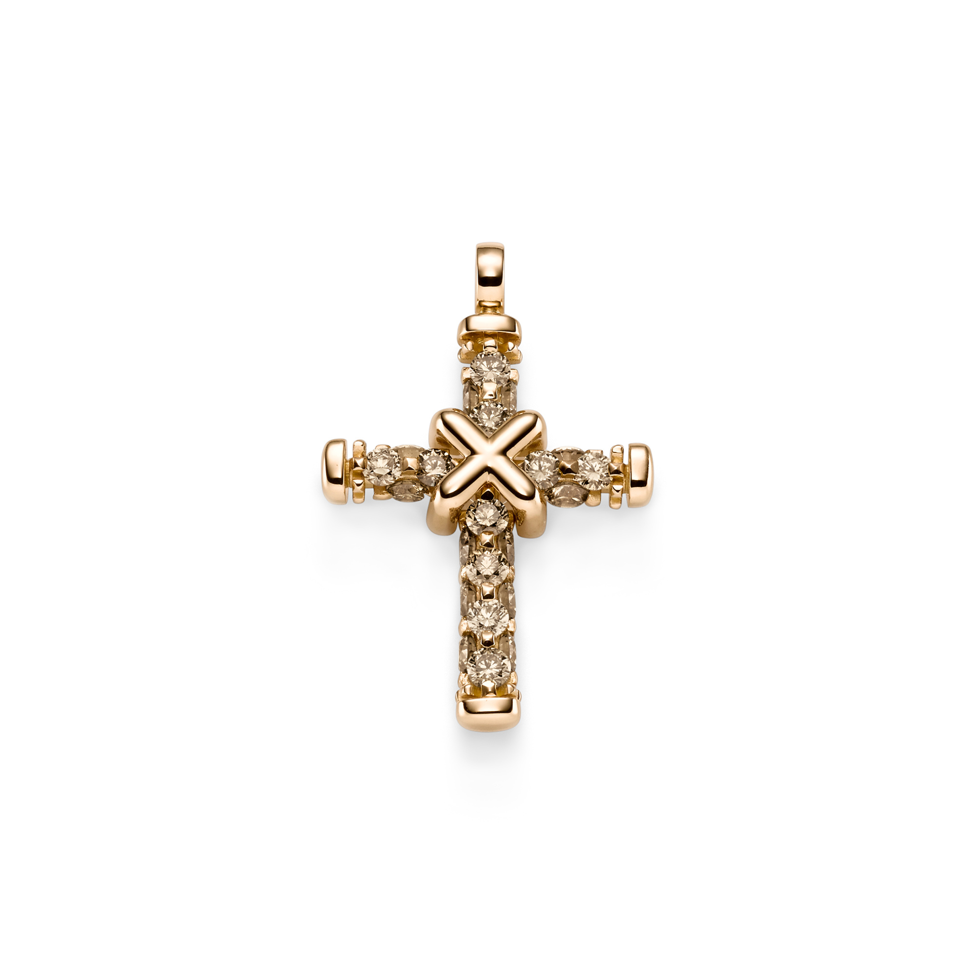 Ref. 21-1036973-5000 - Dieser elegante Kreuzanhänger ist ein Ausdruck von purem Luxus. Er trägt die Handschrift der exklusiven Ultimate Linie, die die hohe Juwelenkunst von Leo Wittwer mit exquisitem Design verbindet. Die Goldelemente werden in einem aufwändigen Verfahren bearbeitet, das den Eindruck einer zusätzlichen Facette erschafft. In einem langen Entwicklungsprozess entstand eine ausgeklügelte Fasstechnik, welche die Illusion erzeugt, dass das Schmuckstück vollkommen aus Diamanten besteht. Die Schönheit der naturbraunen Diamanten wirkt unendlich und verleiht dem Anhänger seinen unwiderstehlichen Charakter.