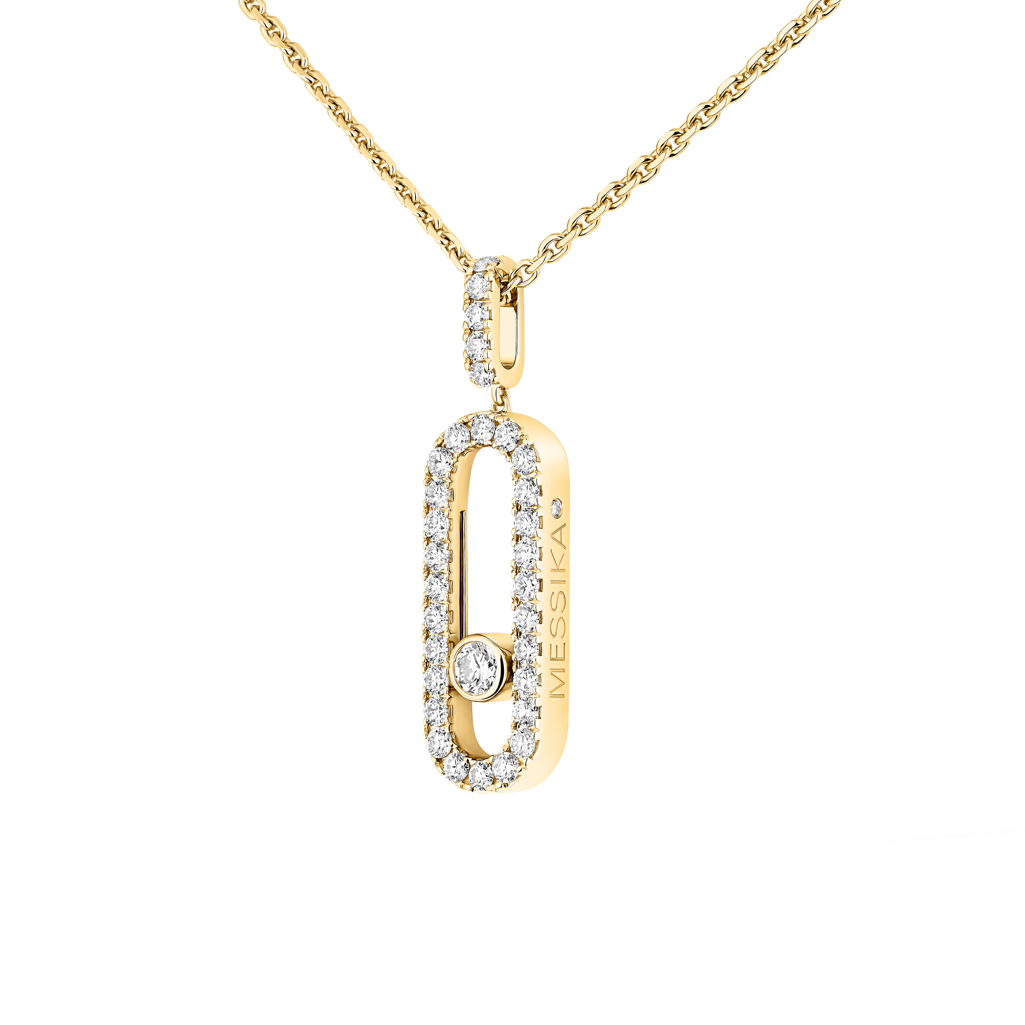 Ref. 12058-YG - Das große Modell der Move Uno Kette aus Gelbgold und Diamanten ist schon jetzt ein Must-Have in jedem Schmuckkästchen. Diskret und elegant: Der sonnige Glanz des Gelbgolds begeistert in Kombination mit der Vielzahl von schillernden Diamanten. Wir lieben seinen Schiebeverschluss, der es seiner glücklichen Besitzerin ermöglicht, ihn je nach Outfit als Halsreif oder tiefer im Dekolleté zu tragen – ein zeitloses Diamantschmuckstück für Frauen, ikonisch wie kein anderes.