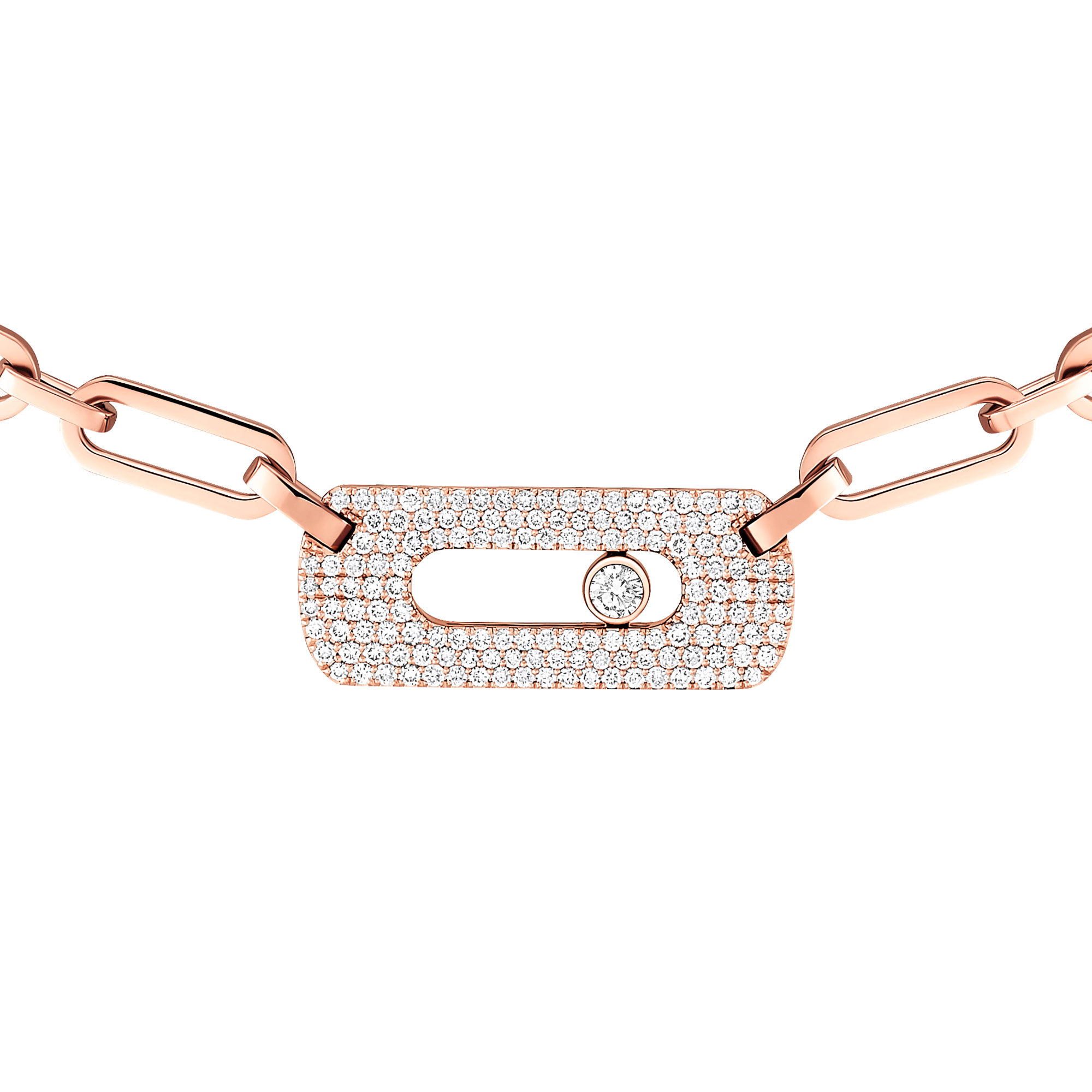 Ref. 12095-PG - Die zum Klassiker erhobenen XXL-Ketten geben auf Laufstegen und in unseren Schmuckkästchen nach wie vor den Ton an. Kraftvoll im Design und elegant in den Proportionen: Die neue Move Link Gliederhalskette lässt Frauenherzen höherschlagen. Sie ist aus 18 Karat Roségold gefertigt, schmiegt sich sanft um den Hals und verleiht der Haut einen strahlenden Glanz. Mit ihrem schillernden, mit Diamanten besetzten Move Motiv und den breiten Kettengliedern ist diese eng anliegende Halskette ein kühnes und selbstbewusstes Schmuckstück, das jedes Outfit perfekt abrundet.