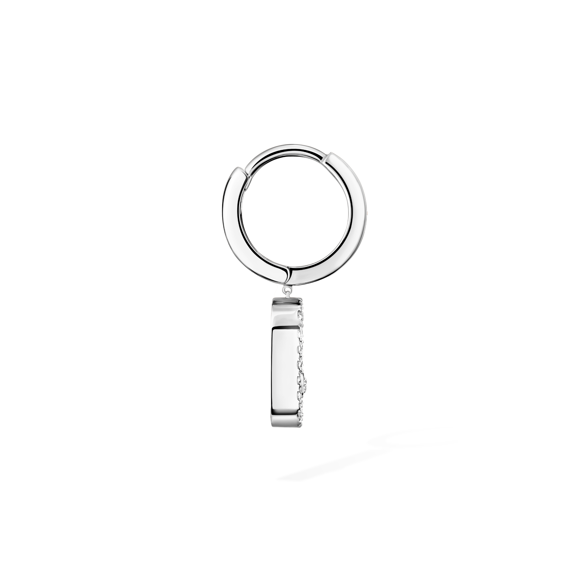 Ref. 12302-WG - Die Move Uno Kollektion ist eine Messika-Ikone und besticht durch ihr grafisches und minimalistisches Design, das den Glanz eines beweglichen Diamanten hervorhebt. Bei dieser einzelnen Creole ist das unverwechselbare Motiv vollständig mit Diamanten ausgefasst und hängt sanft an einem Ring aus 18 Karat Weißgold. Dieser auffällige einzelne Diamantohrring aus Gold kann allein oder für einen selbstbewussten und modernen Look in Kombination mit einem Ohrstecker oder Ohrclip getragen werden. Ein Schmuckstück für den Alltag, das Sie wie eine Signatur tragen können.
