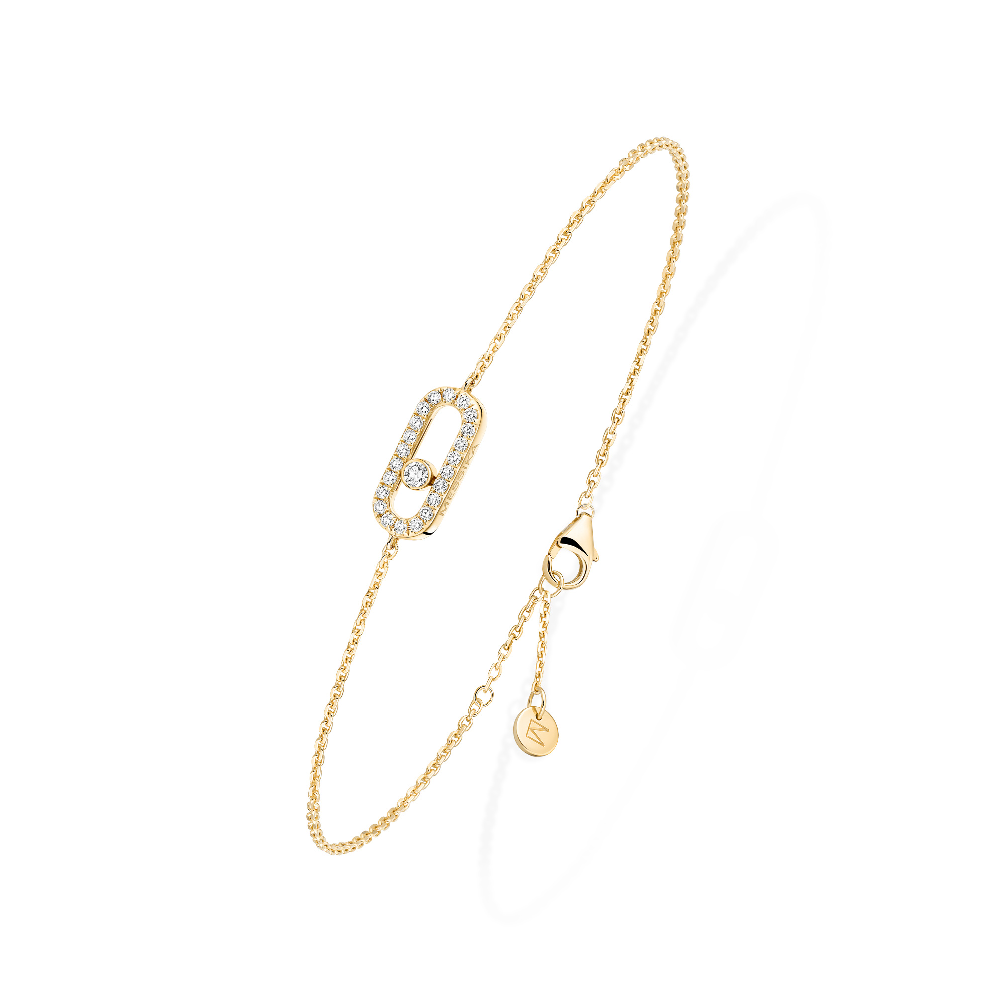 Ref. 12499-YG - Auf der Suche nach dem perfekten Diamantschmuck für Kinder? Messika engagiert sich und lanciert die Kollektion MESSIKA CARE(s), eine bedeutungsvolle Kollektion, die Hoffnung und Solidarität vermittelt. Messika legt das ikonische Move Uno-Motiv in einer zarten Version aus Gelbgold mit Diamanten neu auf und präsentiert sein erstes Armband für Kinder. Dieses Schmuckstück ist umso wertvoller und symbolträchtiger, da für jedes verkaufte Schmuckstück ein Teil des Erlöses geht an die Stiftung Valérie Messika an Vereine und NGOs, die sich für Kinder in den Bereichen Bildung und Gesundheit einsetzen. Ein Schmuckstück, mit dem man zwei Menschen glücklich machen kann.