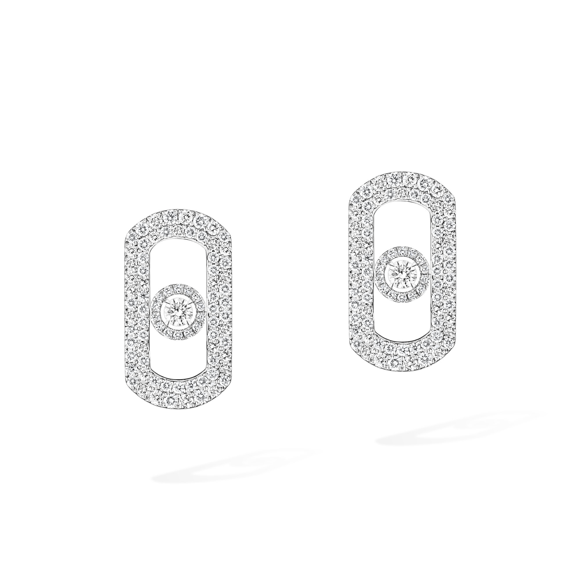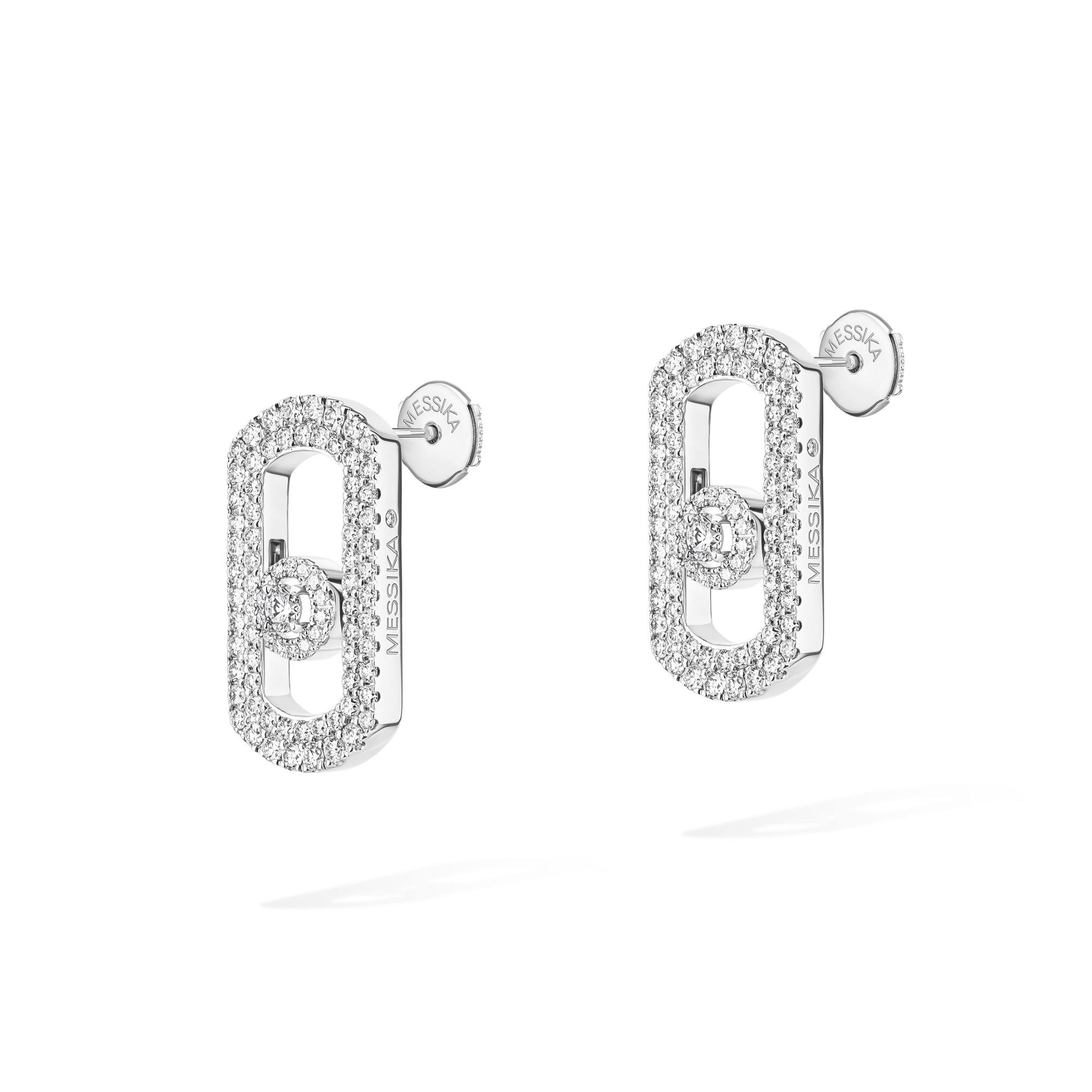 Ref. 12931-WG - Schlichtes Design, skulpturale Konturen, neu erfundenes Kultmotiv ... Die neue So Move Schmuckkollektion von Valérie Messika hat das Zeug zum Must-have! Diese Diamantohrringe aus Weißgold sind keine Ausnahme. Die luxuriösen Schmuckstücke sind die perfekte Balance zwischen Trend und Zeitlosigkeit. Sie kleiden das Ohr dezent und fangen zugleich die gesamte Verwegenheit von So Move ein. Das Kultmotiv der Maison zeigt sich in einer Neuinterpretation mit stärkeren, architektonischen Konturen. Sein beweglicher Diamant erstrahlt dank einer zart mit Diamanten ausgefassten Umrandung in neuem Glanz. Ein statuarisches Diamantschmuckstück aus Gold, das sowohl im Alltag als auch bei den schönsten Anlässen leicht tragbar ist.