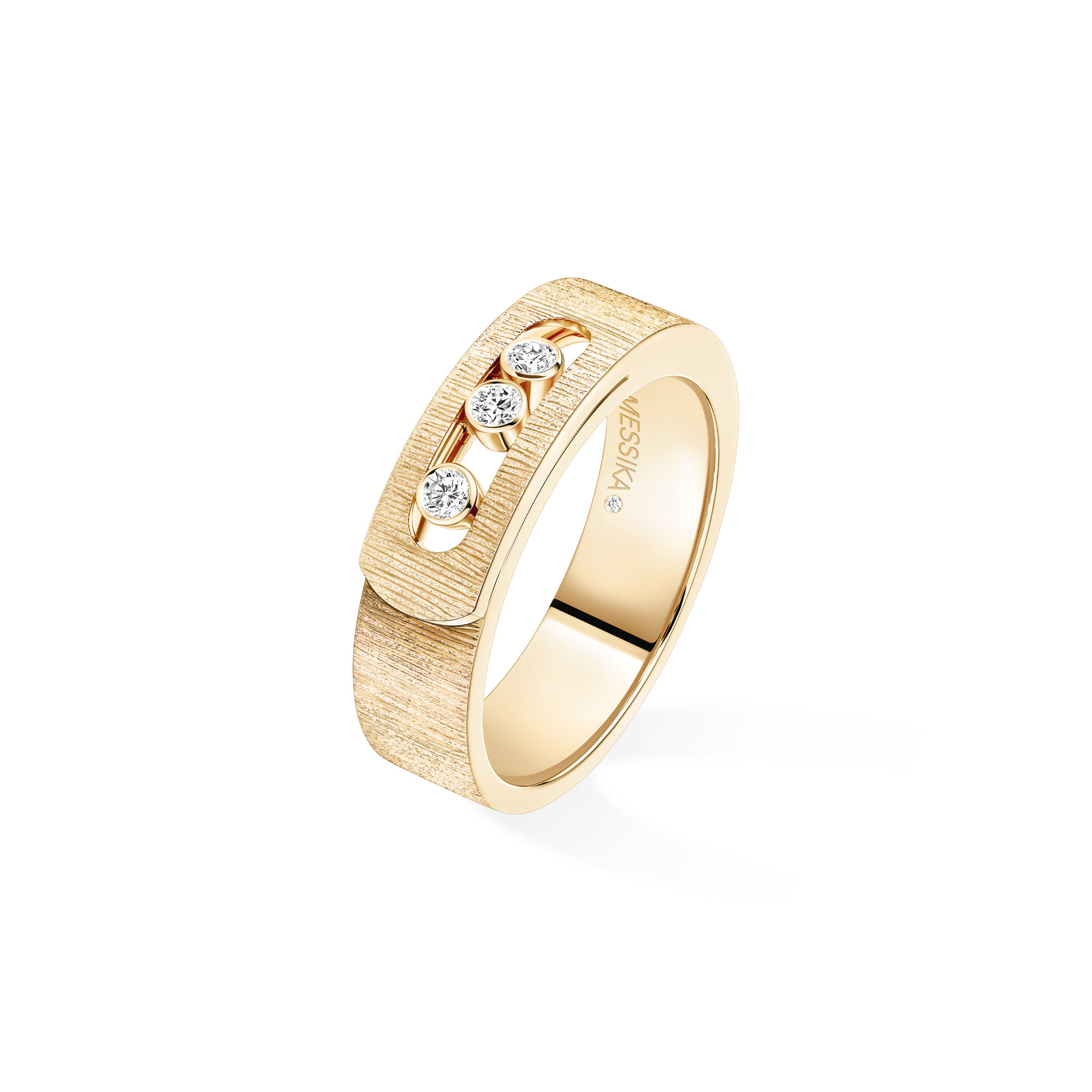 Ref. 14482-YG - Der schimmernde und sinnliche Move Noa Ring aus ziseliertem Gelbgold und Diamanten hüllt den Finger in einen nie dagewesenen Glanz. Die Raffinesse des ziselierten Gelbgoldes, das perfekt mit der Bewegung der Diamanten harmoniert, verleiht diesem Luxusschmuckstück von Messika ein Spiel mit Material und Kontrast. Die von Hand eingravierten Goldstreifen verleihen eine neue Textur, die der Welt der Couture und der Mode ähnelt: ein seidensamtener Effekt, der das Licht einfängt und unendlich reflektiert.