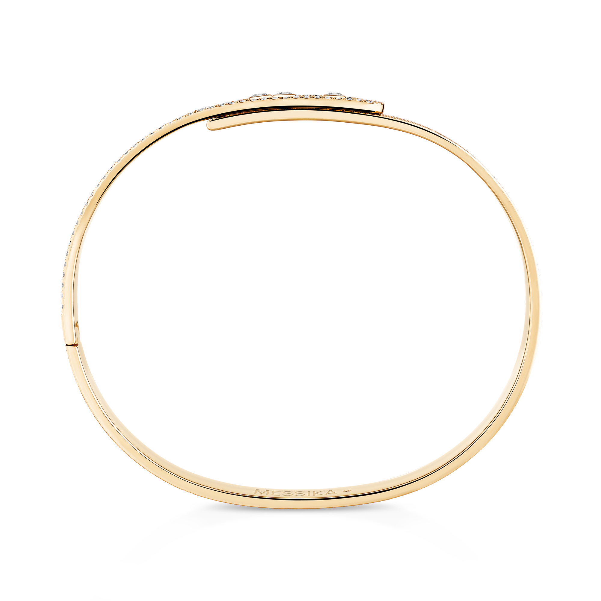 Ref. 14501-YG - Der halb ausgefasste Move Noa Armreif erstrahlt in dieser Veredelung aus ziseliertem Gelbgold in neuem Glanz. Jede handgefertigte Ziselierung reflektiert intensiv das Licht, das sie einfängt, und verleiht diesem schimmernden Armband aus Gold und Diamanten einen Seidensamt-Effekt. Das Diamantarmband für Herren und Damen besticht durch die Reinheit seines Designs und die Raffinesse seines Lichtspiels: das Funkeln der mit Diamanten ausgefassten Fläche, das Schillern der drei beweglichen Diamanten und die ausdrucksstarken Lichtreflexe des ziselierten Gelbgoldes. Ein luxuriöses Schmuckstück, das die Juwelierkunst der Schmuck- und Haute-Joaillerie-Maison offenbart und Ihr Handgelenk mit einem unnachahmlichen Stil schmückt.