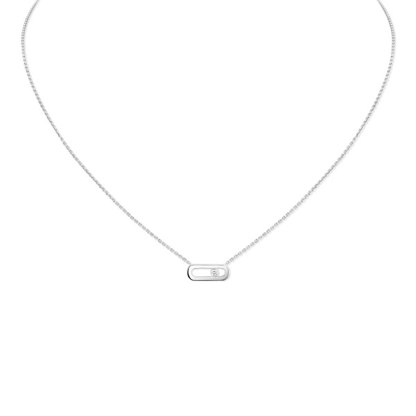Ref. 14613-WG - Die Move Uno Halskette aus 18 Karat Weißgold und Diamanten ist die perfekte Begleiterin! Das Collier wurde vollständig von Hand gefertigt und greift das Kultdesign der Pariser Maison in einer neuen Version ohne Steinbesatz am Rand auf: In der Mitte des Motivs befindet sich ein Diamant, der mit den Bewegungen mitschwingt. Diese Kreation aus Gold und Diamanten ist das ideale Luxusgeschenk und besticht durch ihren zeitlosen und zugleich modernen Stil. Uns gefällt besonders die zeitgemäße und elegante grafische Linie.
