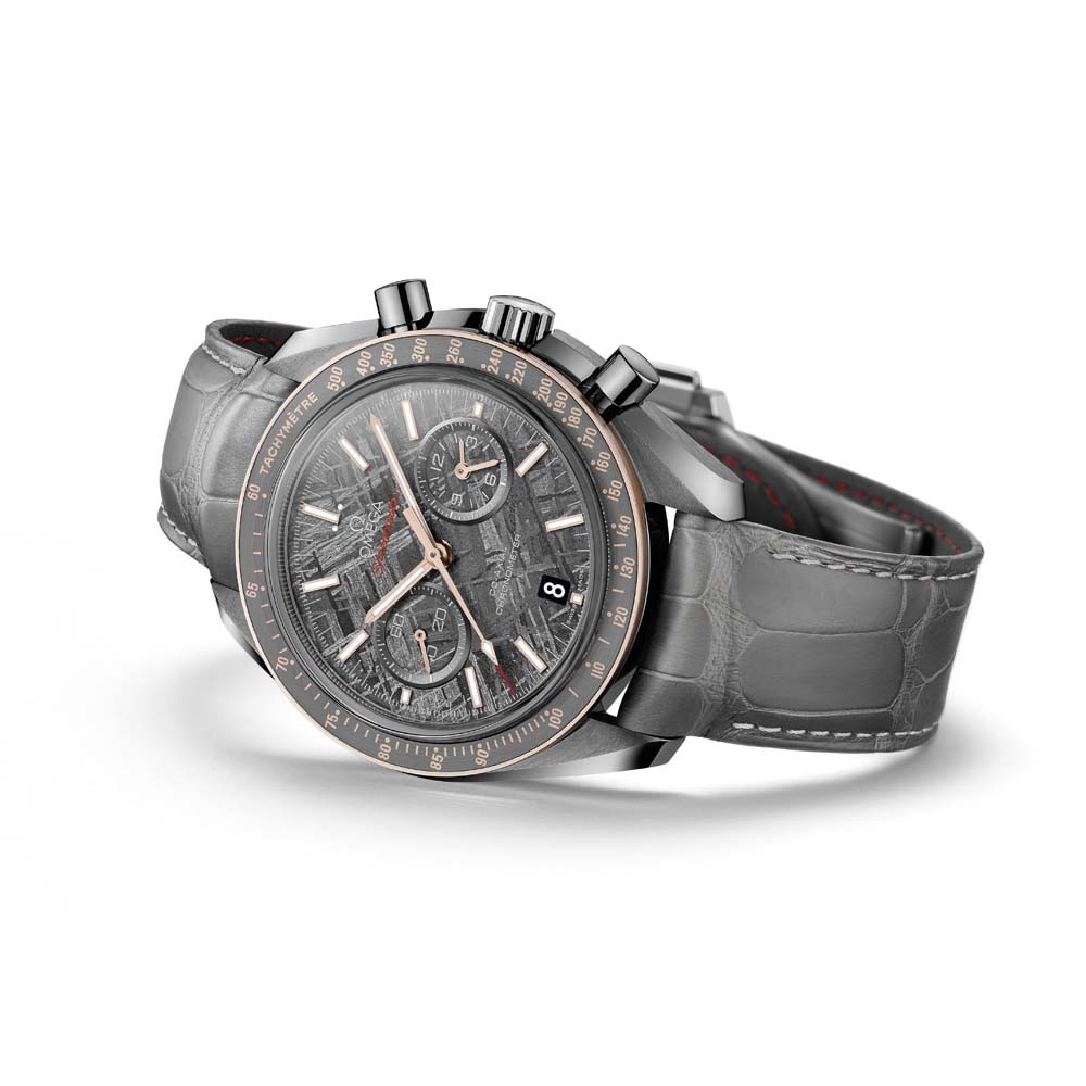 Grauer Meteorit mit Indizes gefasst in 18K Sedna™ Gold indezes